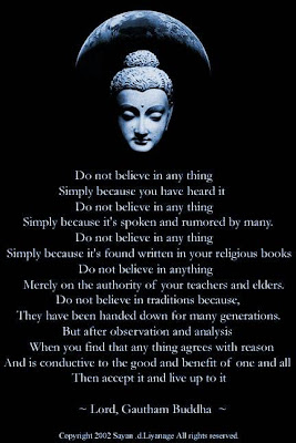 “Now, Kalamas, don’t go by reports, by legends, by traditions, by scripture, by logical conjecture, by inference, by analogies, by agreement through pondering views, by probability, or by the thought, ‘This contemplative is our teacher.’ When you know for yourselves that, ‘These qualities are skillful; these qualities are blameless; these qualities are praised by the wise; these qualities, when adopted & carried out, lead to welfare & to happiness’ — then you should enter & remain in them.