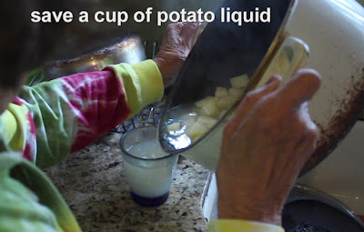 Drain potatoes when done, but be sure to reserve a cup or two of liquid.