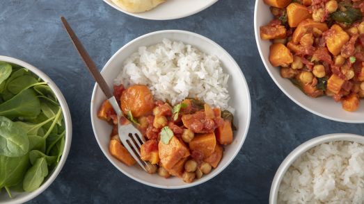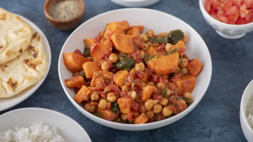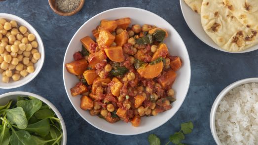 5) Sweet potato, chickpea and spinach curry